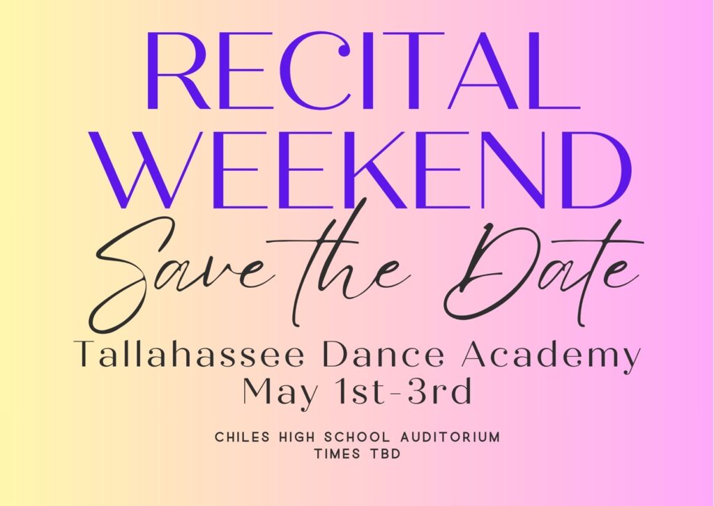 - Rehearsal & Recital Weekend Friday, May 1st-3rd